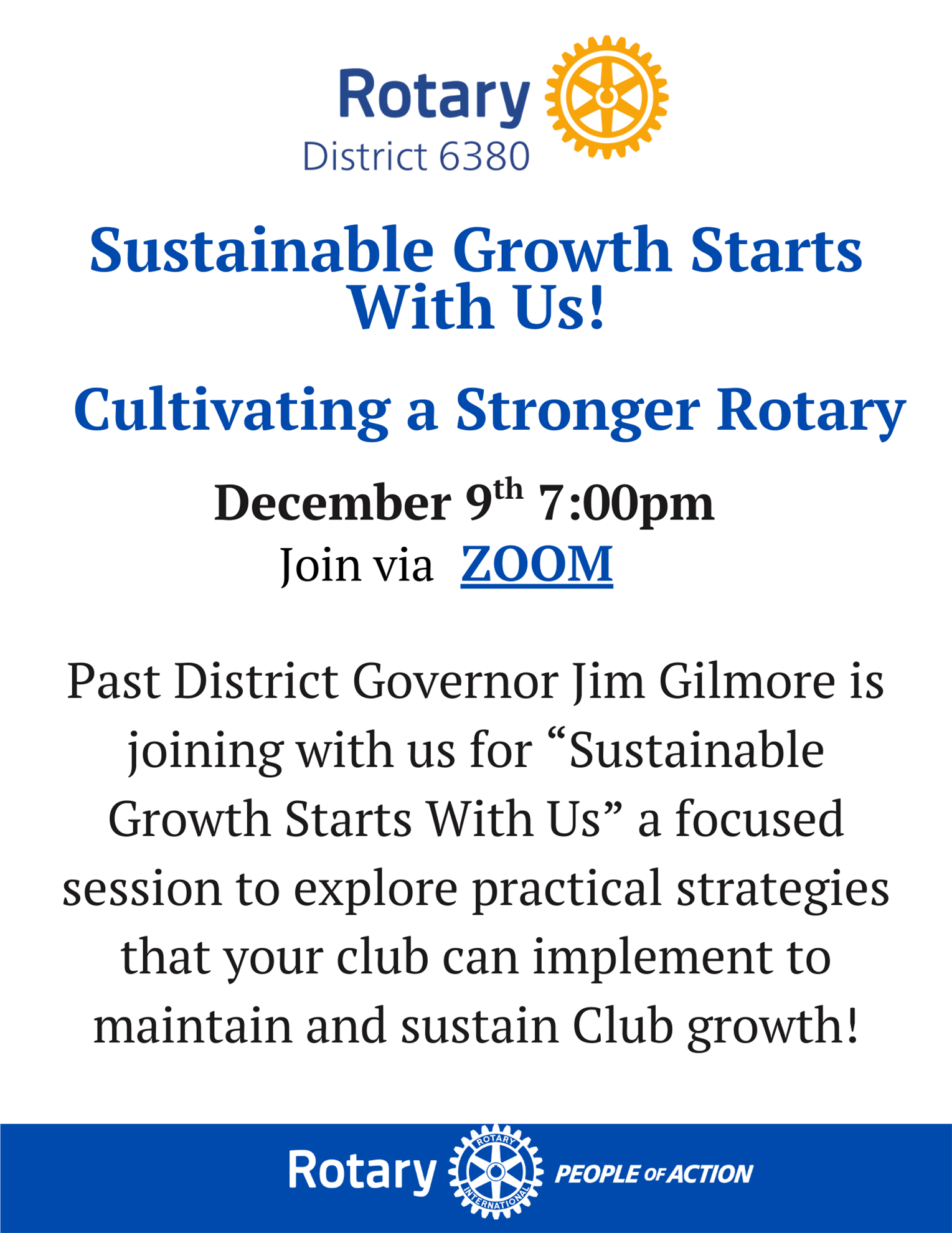 Sustainable Growth Starts With Us! Cultivating a Stronger Rotary.Join the Zoom discussion on December 9th at 7:00pm