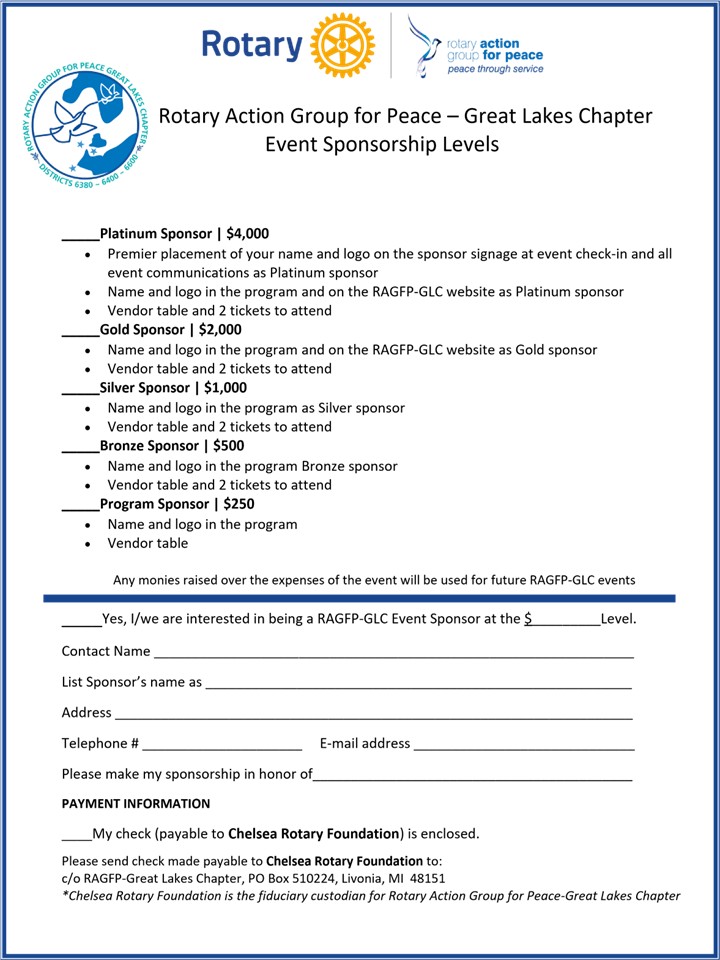 *Chelsea Rotary Foundation is the fiduciary custodian for Rotary Action Group for Peace-Great Lakes Chapter
