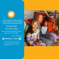 "Your club’s commitment to being a ShelterBox Hero continues to make a profound difference for families who have lost so much. Thank you for standing with us in this work. Your leadership, generosity, and belief in the power of Rotary service ensure that families facing disaster are not left without hope.”